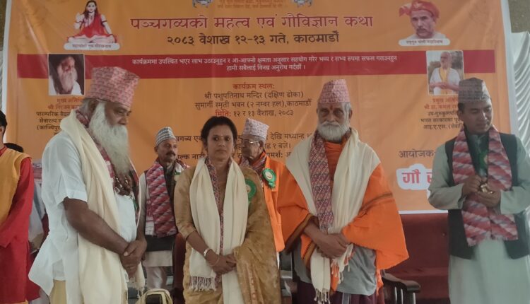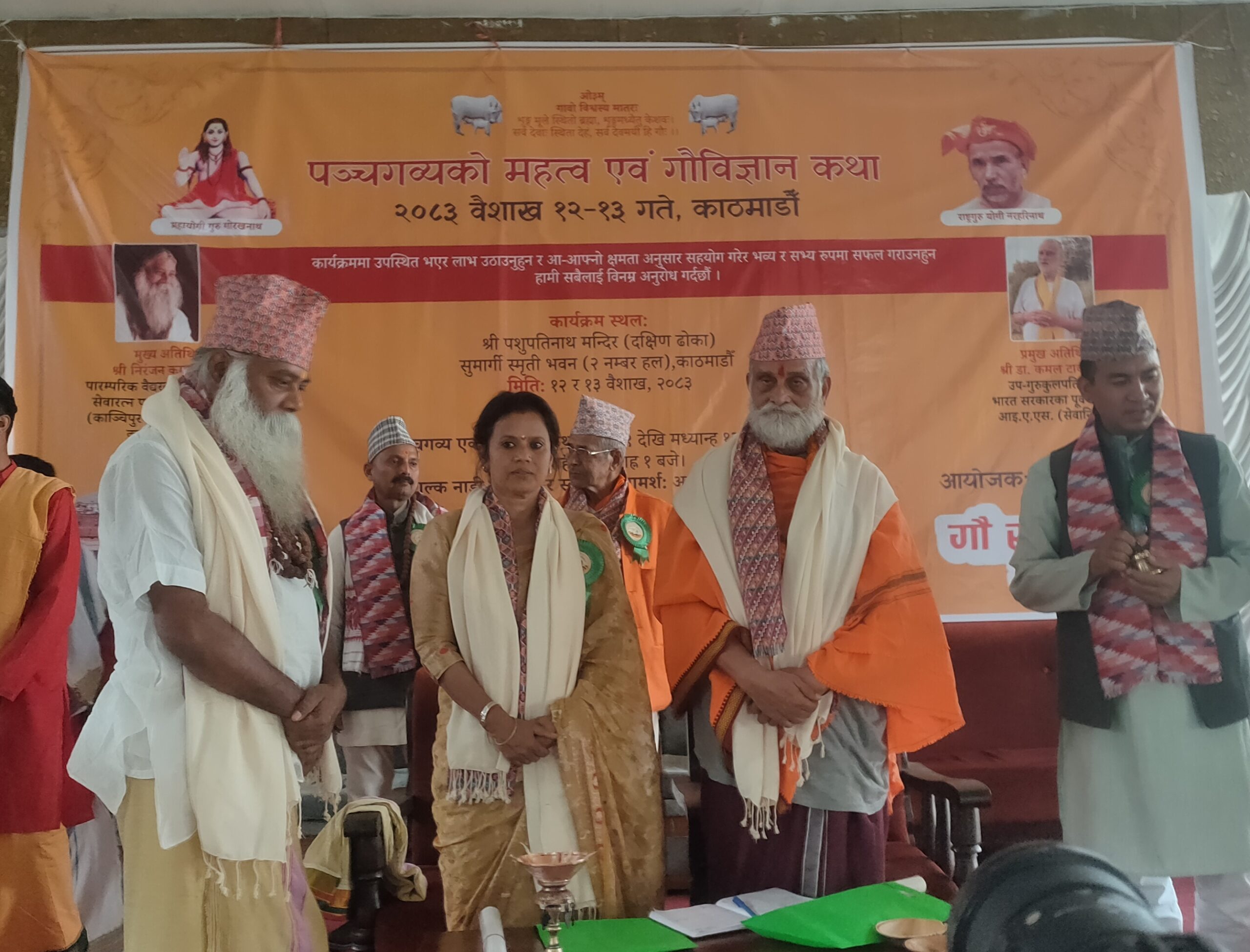 काठमाडौं — नेपालमै पहिलोपटक आयोजना गरिएको ‘गौविज्ञान कथा’ कार्यक्रम दुई दिनसम्म सञ्चालन भई सफलतापूर्वक सम्पन्न भएको छ। गौसंरक्षण अभियानको आयोजनामा सम्पन्न उक्त कार्यक्रममा गाईसँग सम्बन्धित आध्यात्मिक, वैज्ञानिक तथा स्वास्थ्यसम्बन्धी विषयमा विस्तृत रूपमा चर्चा गरिएको थियो।